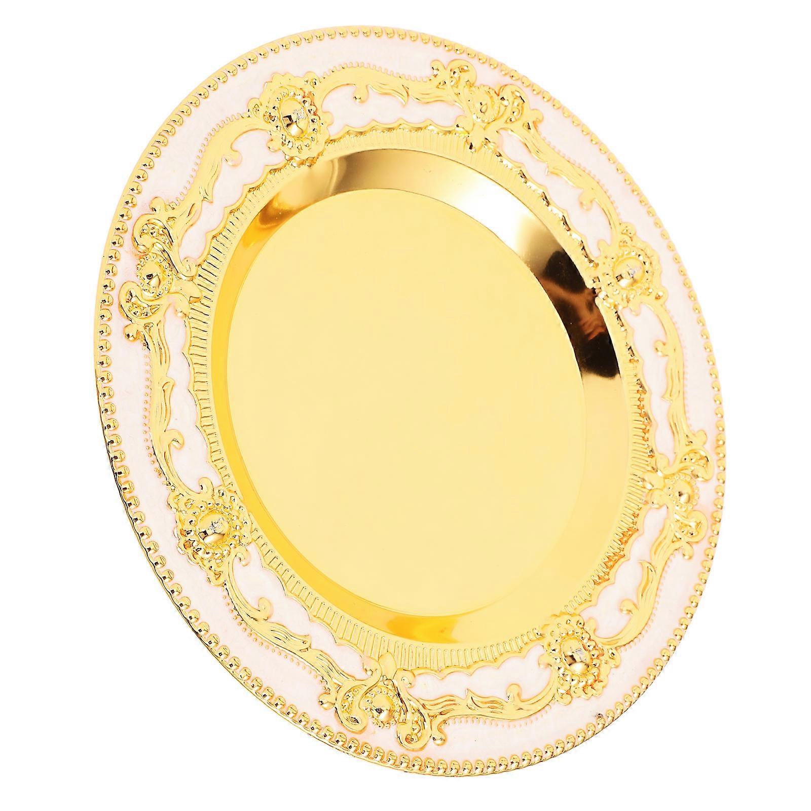 Round Gold Tray Vintage Decorative Tray For Home Decor Storage Tea Cup Mat 1Pack