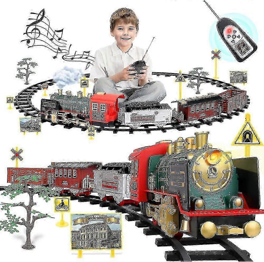 Remote Control Steam Train Sets W/smoke,light,sounds,classical Electric Train With Steam Locomotive Engine,cargo Cars&tracks,powered By Rechargeable