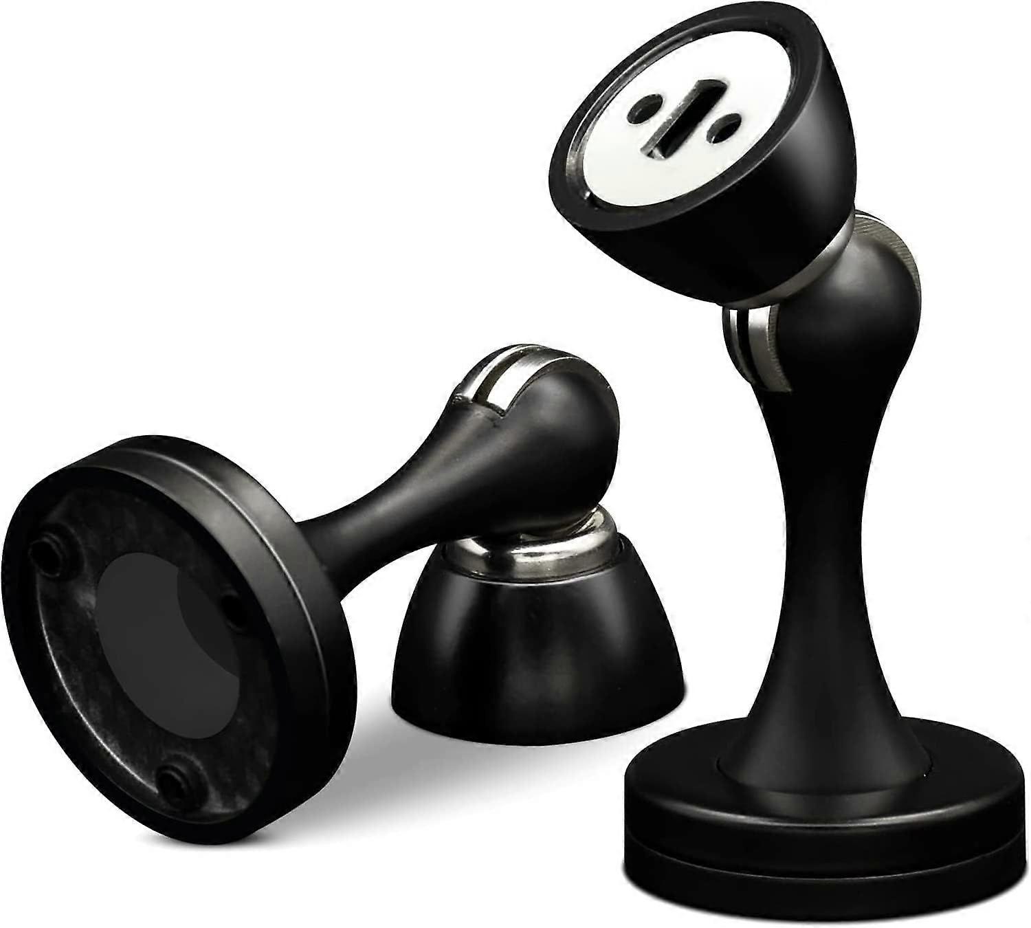 Set of 2 heavy duty black stainless steel magnetic door stops for baseboards