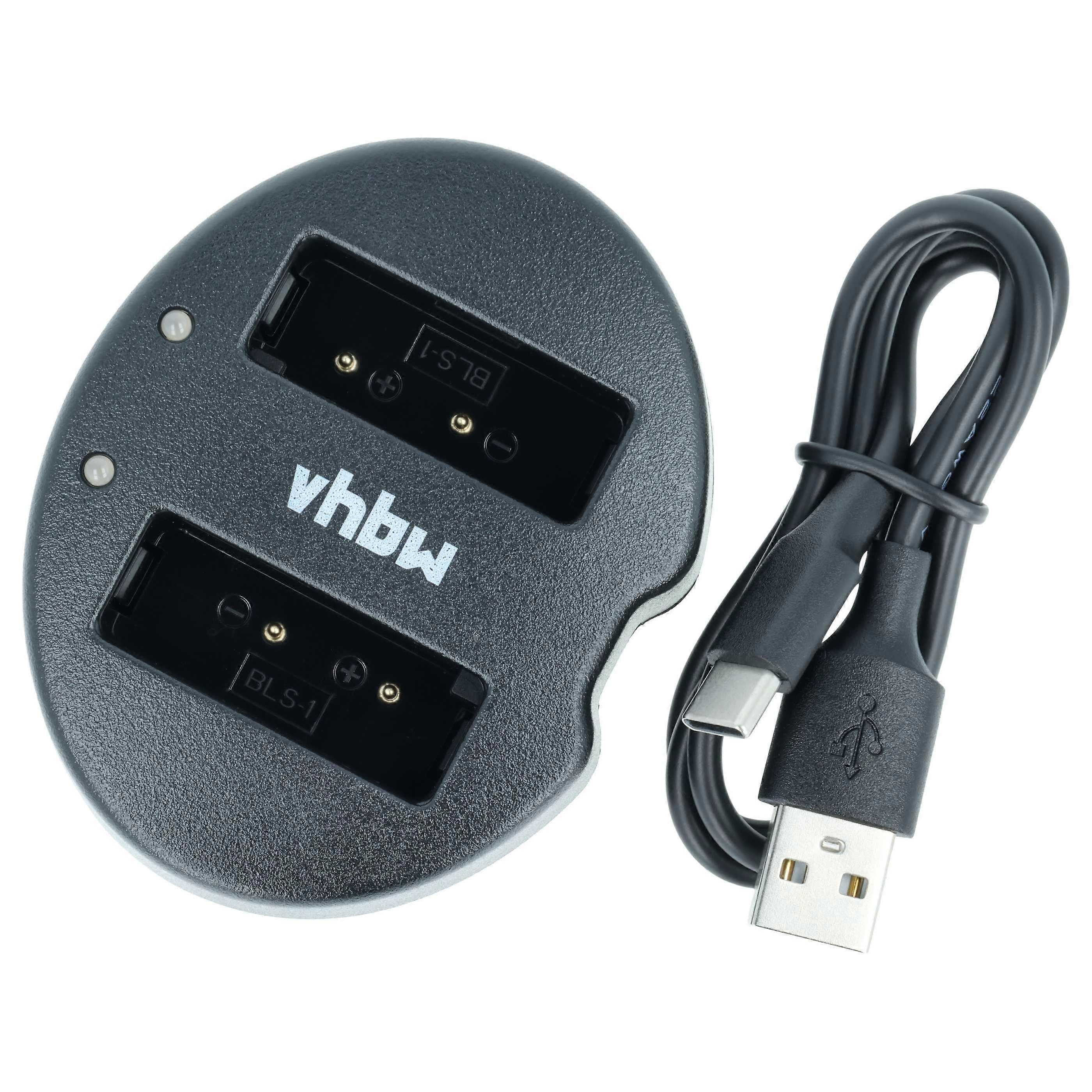 vhbw Dual USB-C Ladegerät kompatibel mit Olympus Stylus 1s Kamera - Ladeschale + USB-C Kabel Ladeanzeige