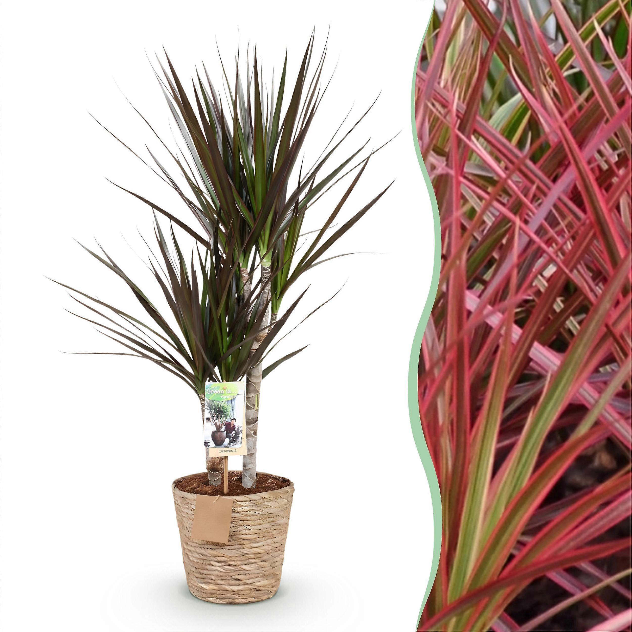 Dracaena Magenta - Drakenbloedboom - Weinig onderhoud - met mand - Groen - 70-80cm - Ø17cm