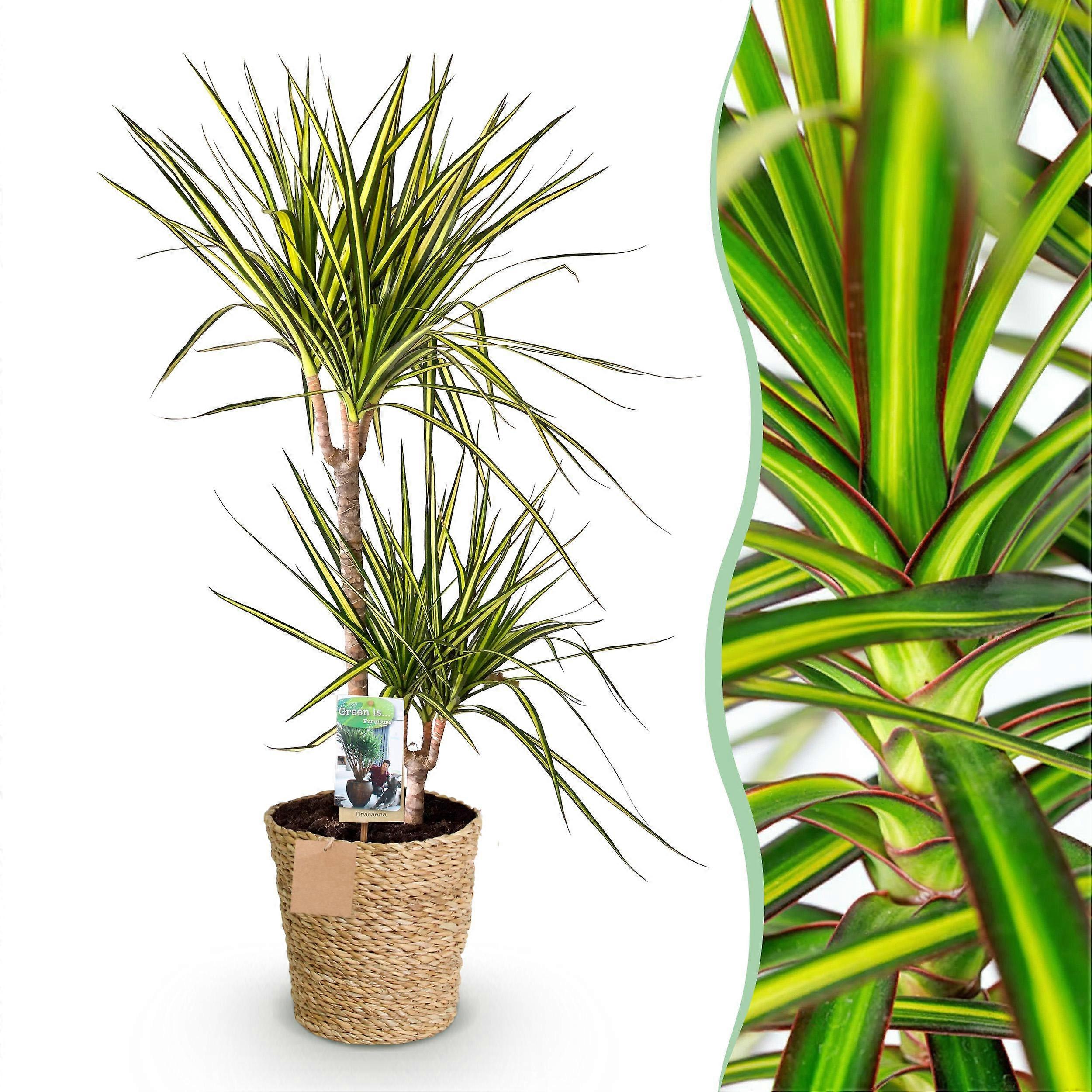 Dracaena Sunray - Drakenbloedboom - Weinig onderhoud - met mand - Groen - 90-100cm - Ø21cm