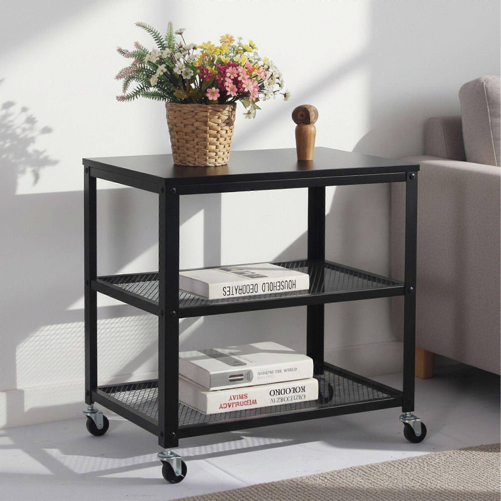 Svart vagn med 3 våningar och hjul – mobil förvaringsenhet