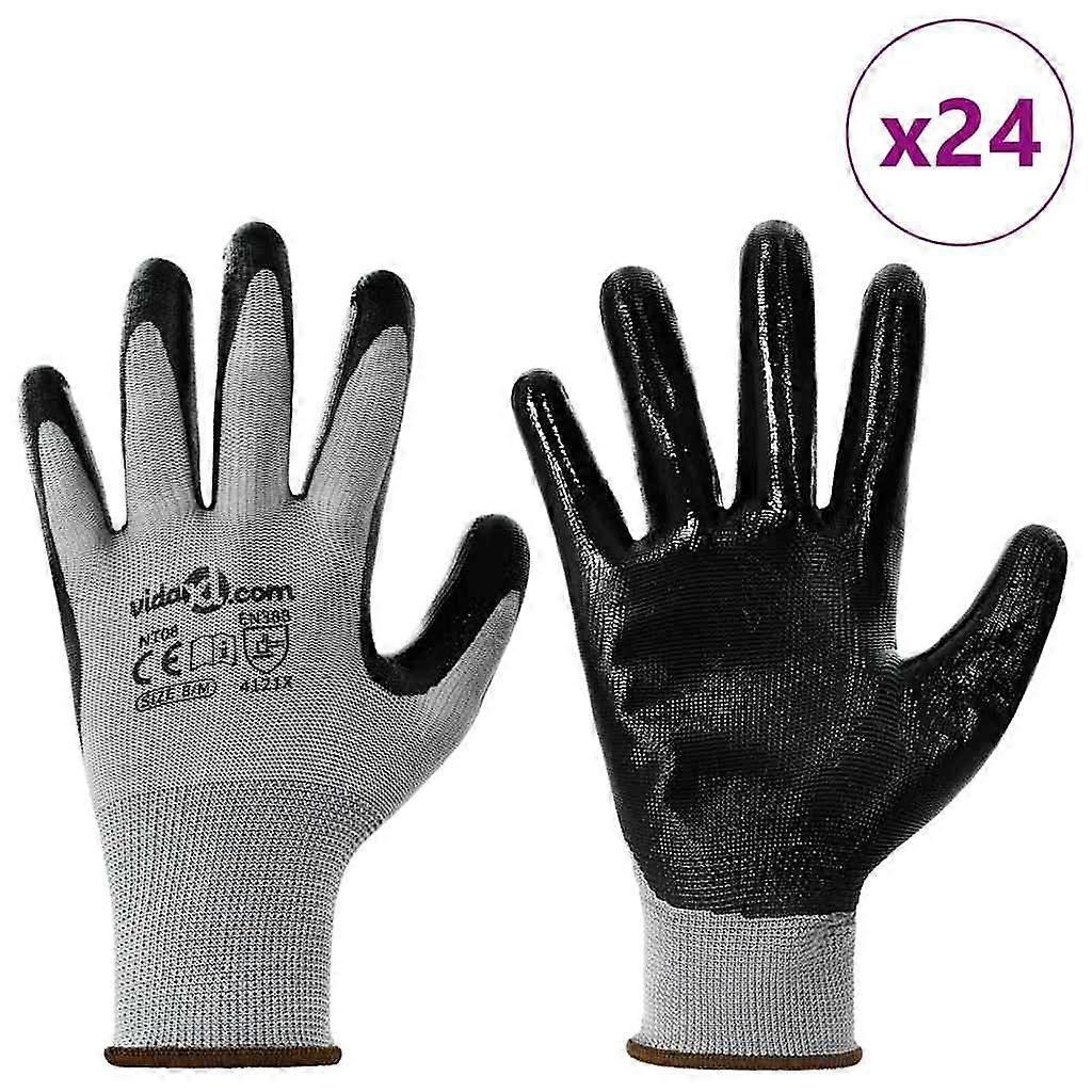 Arbeitshandschuhe 24 pcs Grau und Schwarz 8 / m Polyester