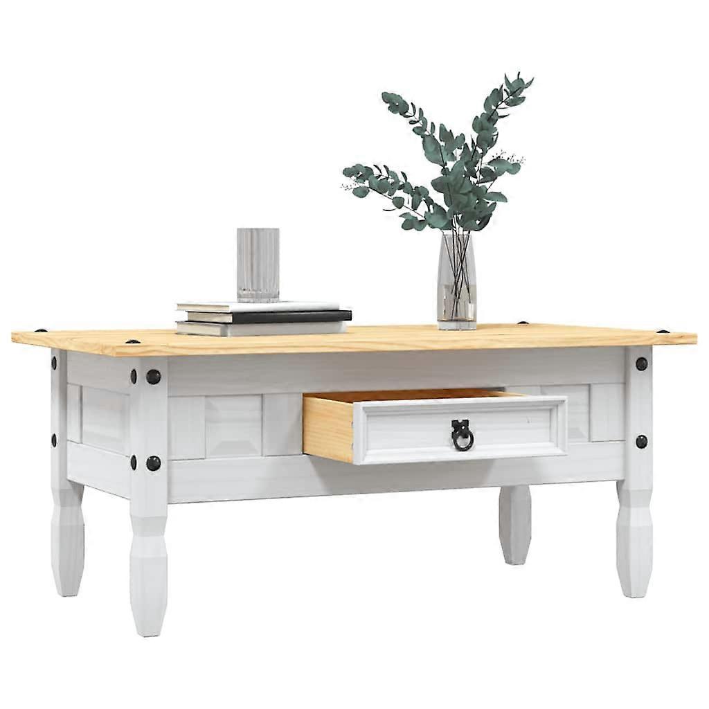 Couchtisch Mexiko-Stil Kiefernholz Weiß 100x55x44 cm