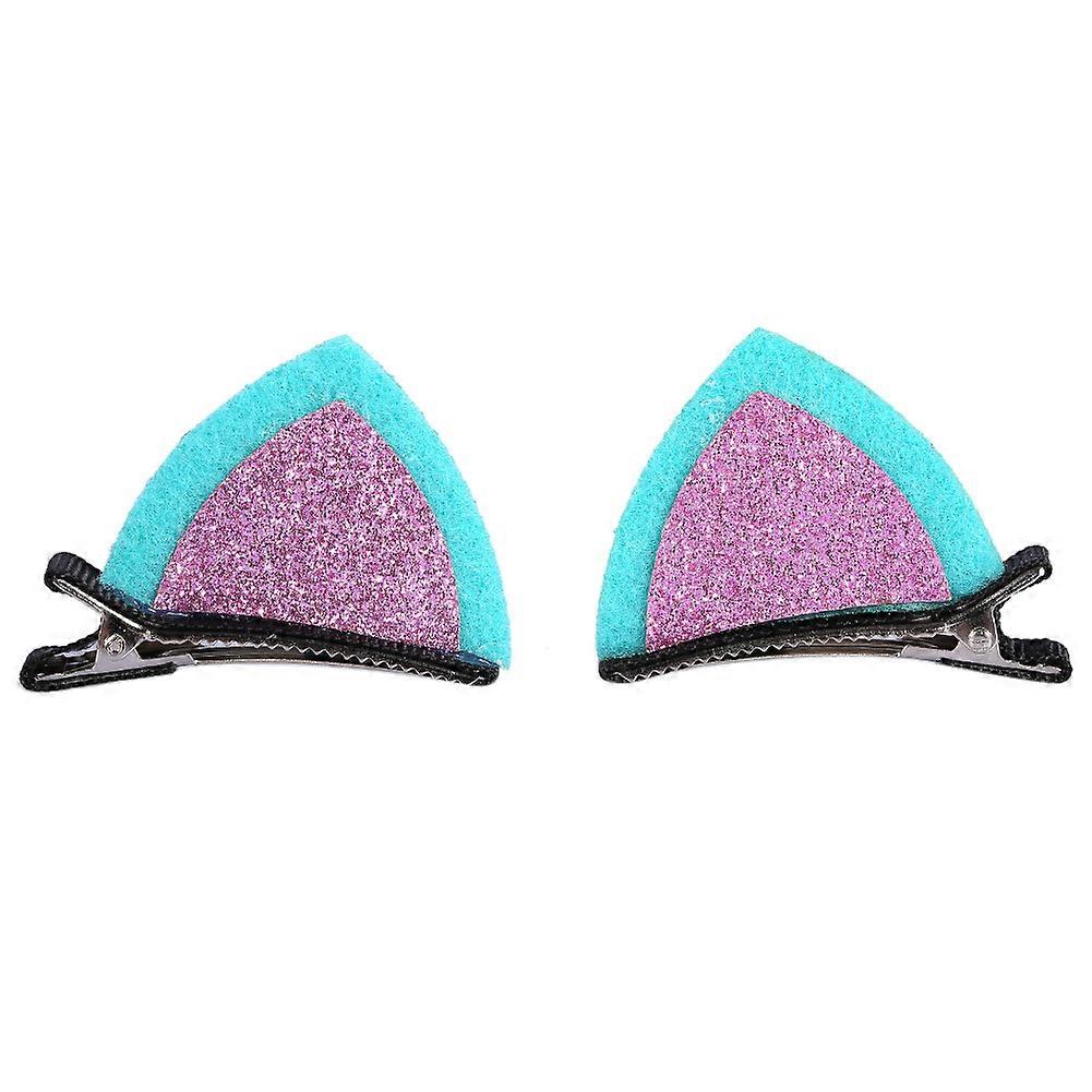 1 Pair Children Girls Cat Ears Hairpin Metal Clip Hair Decoration Accessories Lake Blue + Pink