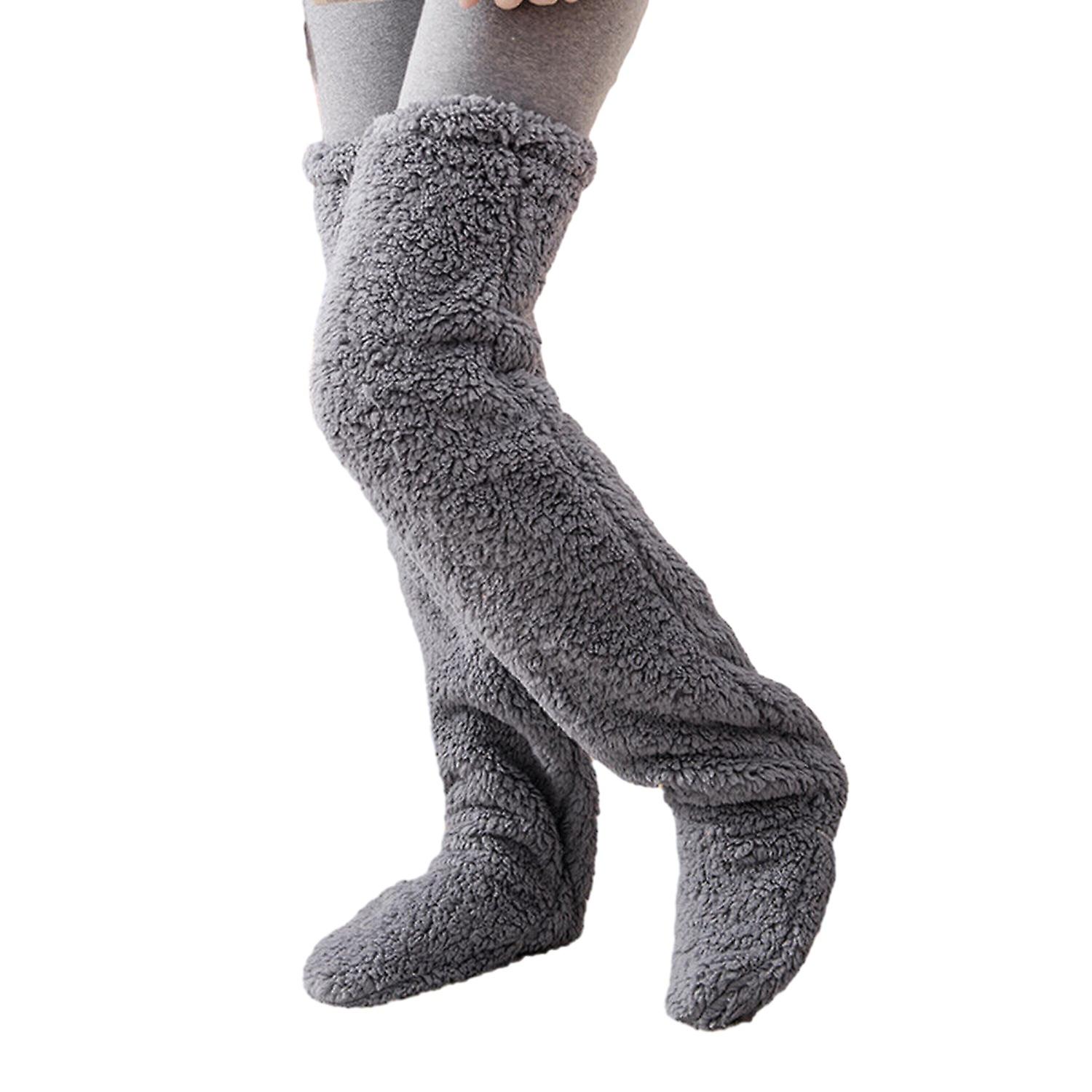 1 Pair Women Autumn Winter Over Knee Fuzzy Socks Solid Color Plush Thigh High Socks Thick Furry Boot