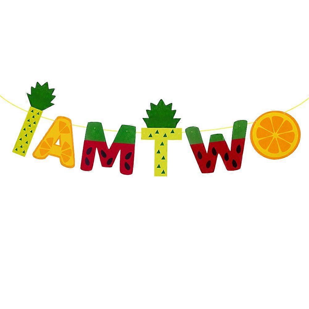 1pc I AM TWO Fruits Shape Fruits Pattern Birthday Garland Banner for Kids Birthday Party Decoration (Assorted Color)