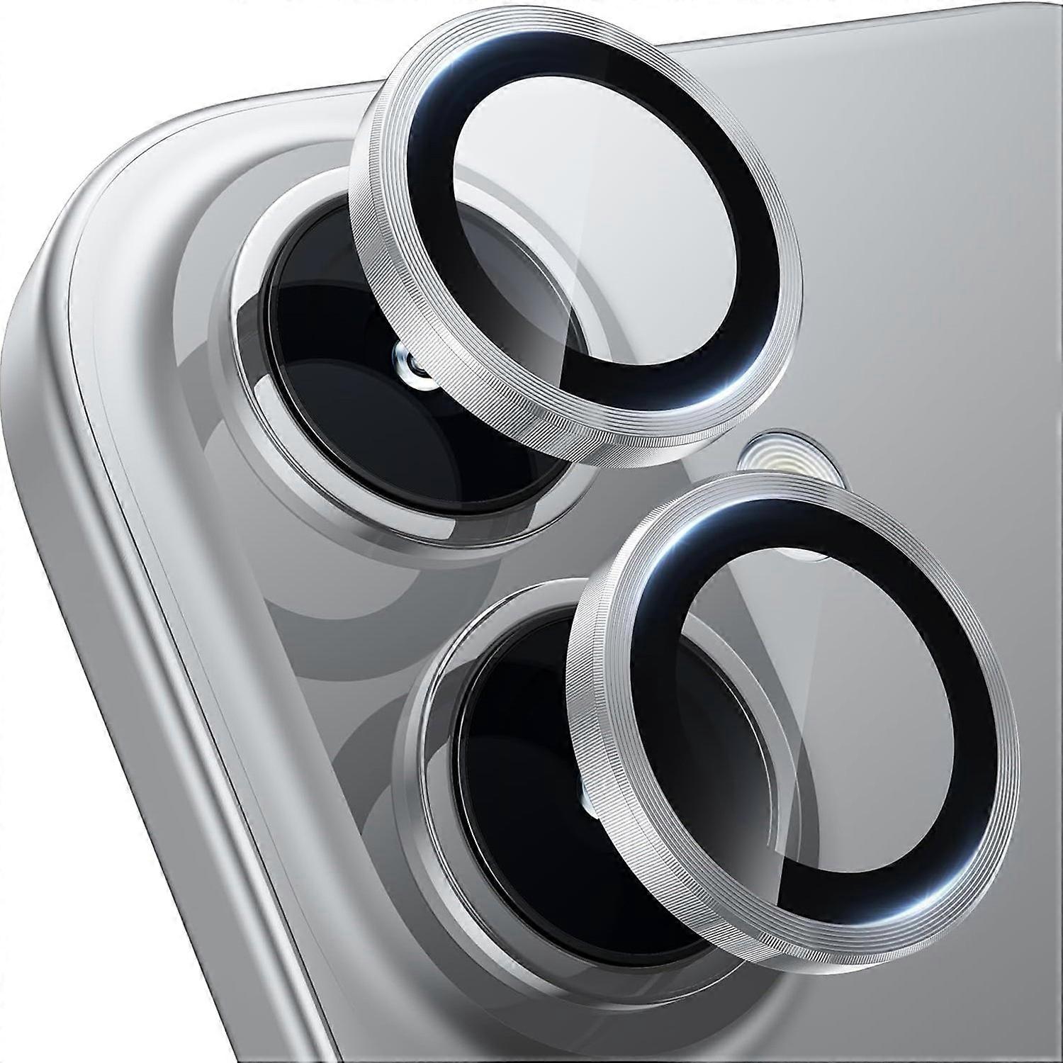1Set For iPhone 16/16 Plus Camera Lens Film Tempered Glass CD Vein Metal Ring Rear Lens Protector