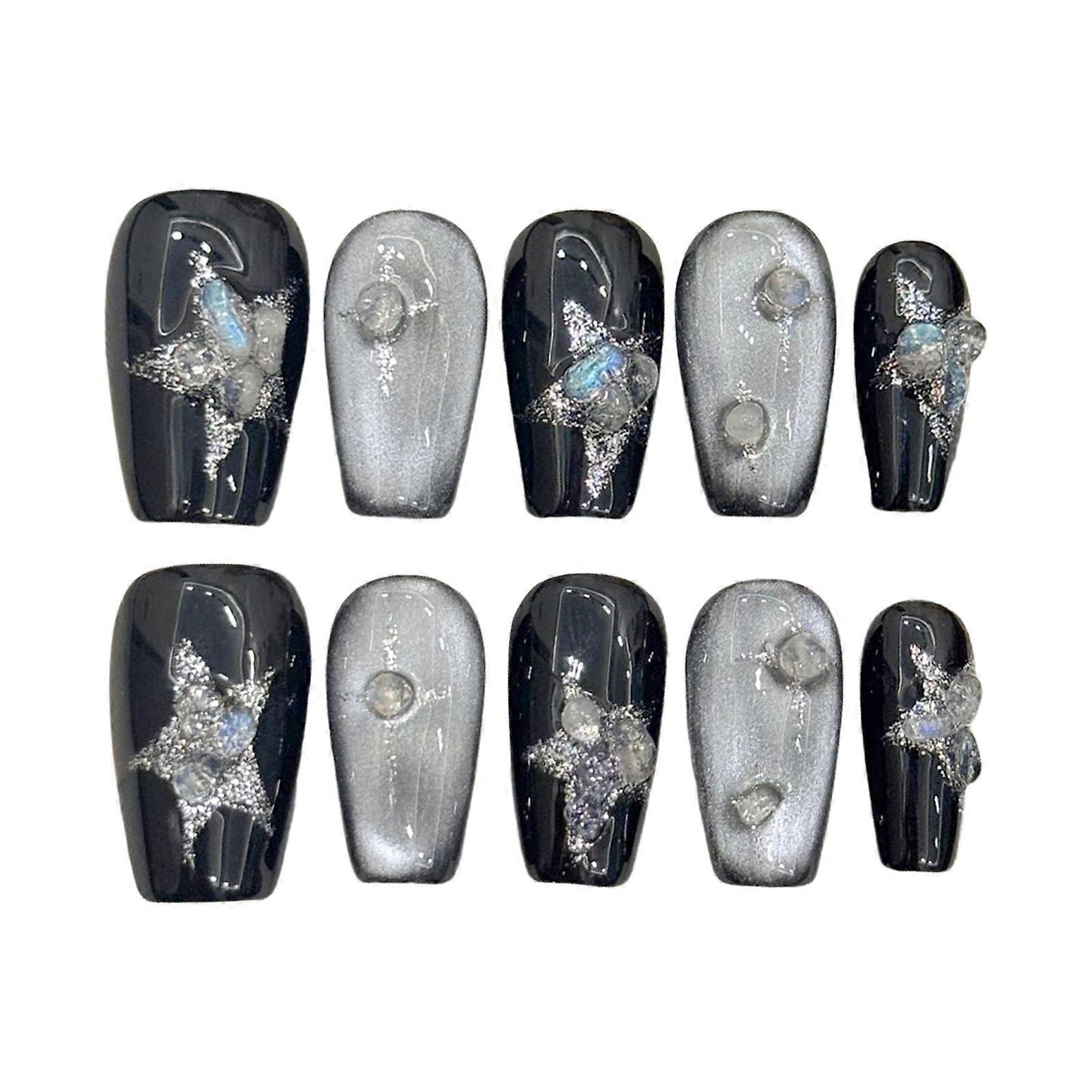 Features: Versatile Design: Our women short square press on nails are perfect for any occasion, offering a stylish and elegant look that complements every outfit while ensuring easy application for a perfect finish. Premium Quality: Made from high-quality materials, these handmade glossy square fake nails are durable, lightweight, and designed to last, providing a long-lasting manicure that looks salon-fresh without the hassle. Unique Styles: Featuring shiny star fake nails with cat eye effects and dark glossy glitter press on nails, these designs allow for creative expression, making them ideal for diy nail art enthusiasts and professionals alike. Easy Application: The Women Full Cover Stick on Nails are user-friendly, allowing for quick and easy application at home. Perfect for those who want a stunning manicure without the need for expensive salon visits. Complete DIY Kit: Ideal for women and girls, this diy at-home manicure kit includes everything you need to create beautiful nail designs, making it a fun and engaging activity for friends or a relaxing self-care session. Specification: Material: Resin Size,Thumb(mm),Index Finger(mm),Middle Finger(mm),The Fourth Finger(mm),Little Finger(mm) XS,14,10,11,10,7 S,15,11,12,11,8 M,16,12,13,12,9 L,17,13,14,13,10 Notes: 1. The real color of the item may be slightly different from the pictures shown on website caused by many factors such as brightness of your monitor and light brightness. 2. Please allow slight manual measurement deviation for the data. Include: 10PCS*Women Short Square Press on Nails 1*Nail File 1 Set*Jelly Glue