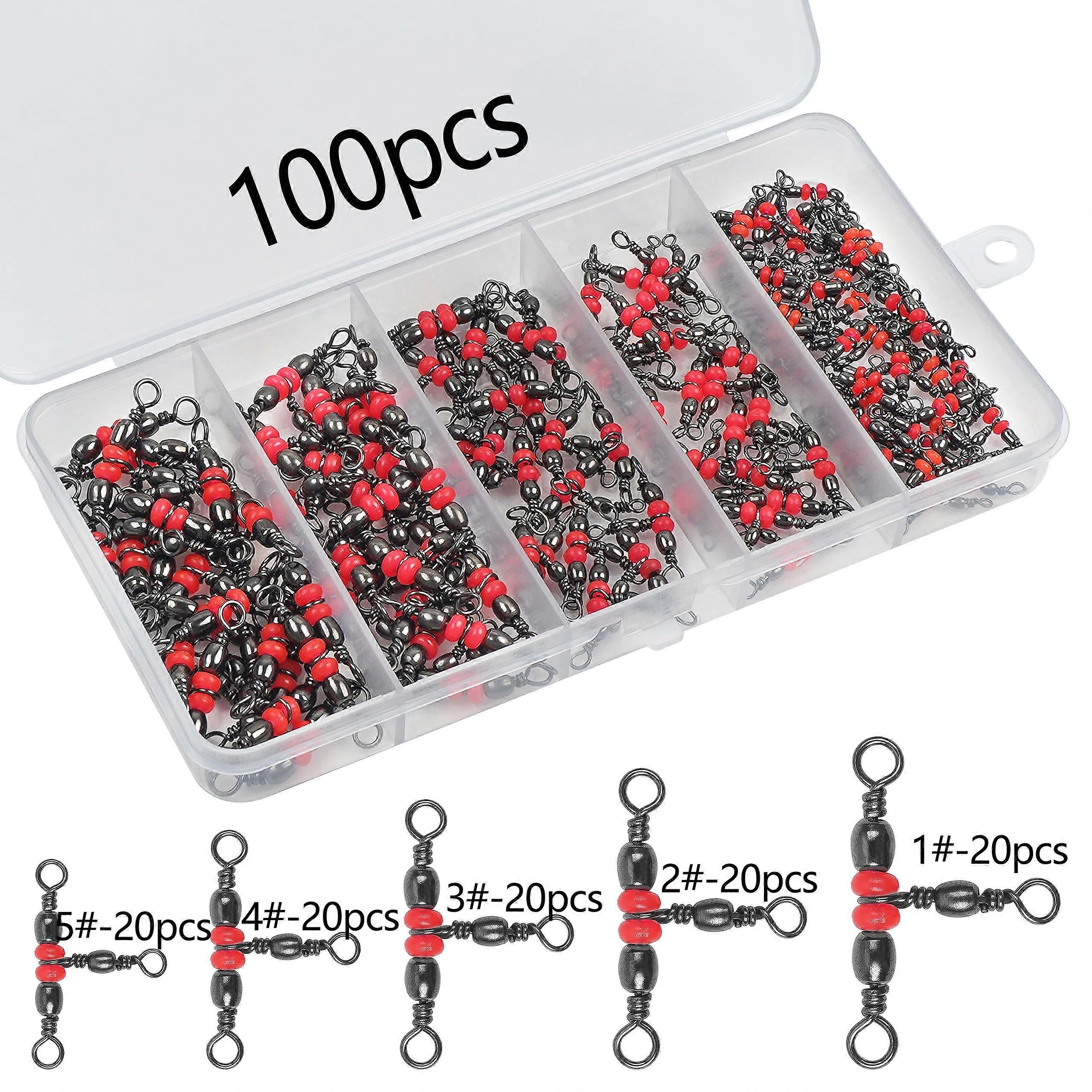 100 pi��ces/bo?te 3 ��merillons �� trois voies, triple pivotant en forme de T, connecteur de mat��riel de p��che, ligne de p��che pivotante, plate