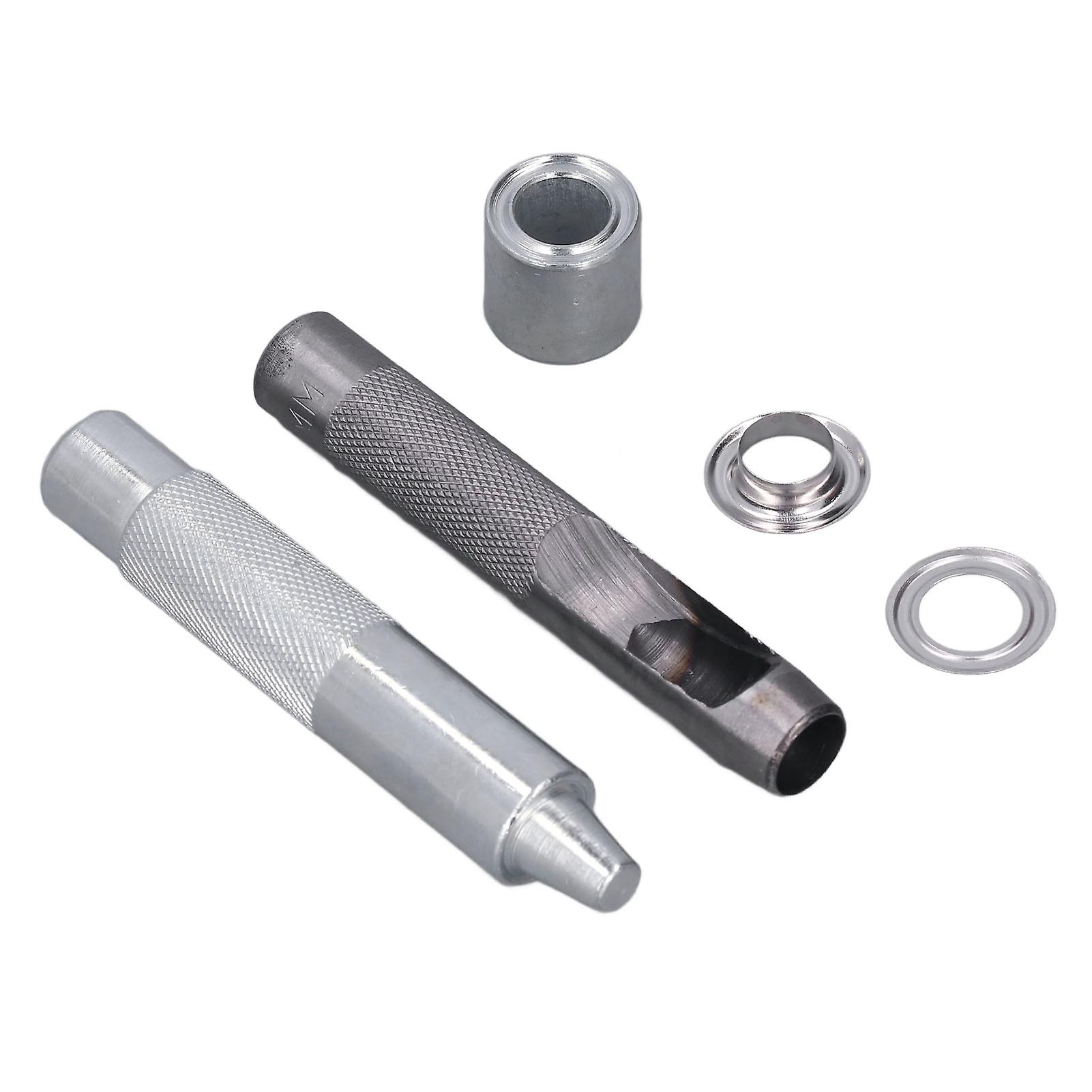 100 Sets Grommet Tool Kit Inner Diameter 12MM Eyelet Buckle Canvas Buckle Grommet Eye Tool Set with Installation Tools Item Type: Grommet Tool Kit Material: Stainless Steel Specifications: 100 Sets Of Eyelets (Including Eyelets And Spacers) Product Size: Approx. Eyelet Button Size: Outer Diameter 20mm / 0.8in, Inner Diameter 12mm / 0.47in Gasket Size: Outer Diameter 200mm / 7.9in, Inner Diameter 13mm / 0.51in Punch Tool Size: Length 9.5cm / 3.7in Corn Punch Size: Length 10cm / 3.9in Anti Skid Punch Size: Length 2cm / 0.78in, Diameter 2.1cm / 0.8in