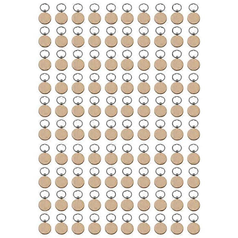 100Pcs Blank Round Wooden Key Chain Diy Wood Keychains Key Tags Can Engrave Diy Gifts