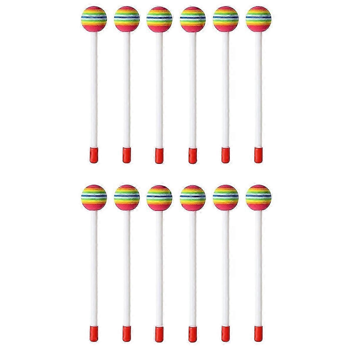 12 Pcs Lollipop Drum Mallet Sticks Round Rainbow Hammer Percussion Sticks Drumsticks for Kids Child