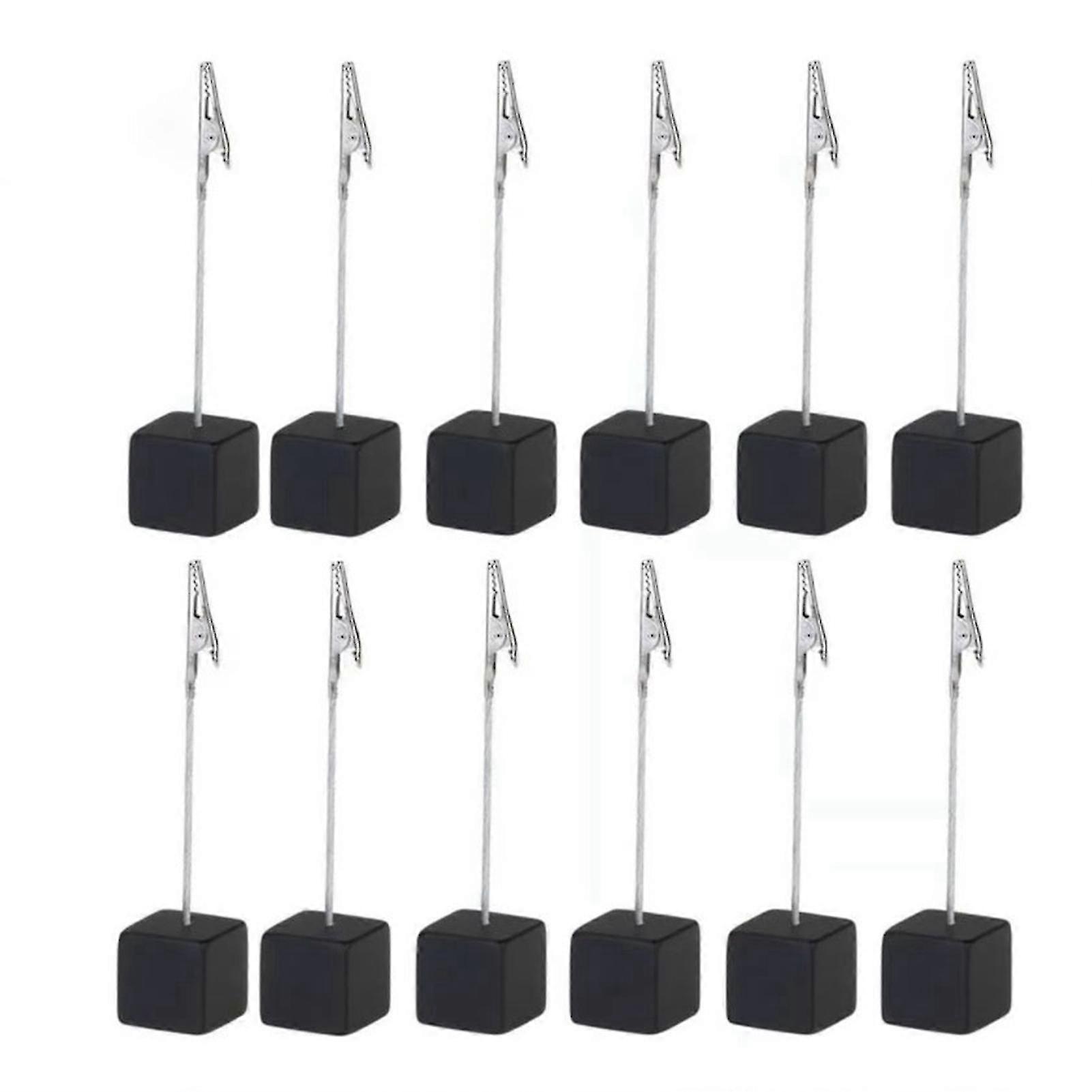 12pcs Card Holder Cube Pine Decorative Table Number Stand Memo Clip Holder For Bedside Decoration Black