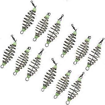12Pcs Glow in The Dark Fishing Feeder Coil for Carp, Inline Bait Cage Tackle with Luminous Lures, Durable Baits Thrower for Freshwater Fishing