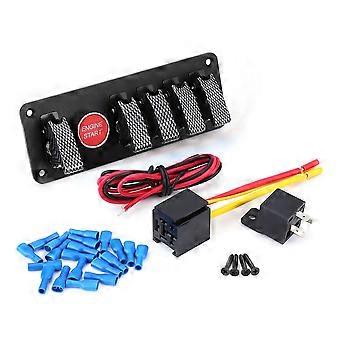 12V 6 Group Toggle Ignition Switch Panel Engine Start Push Button for Racing Car Carbon Fiber
