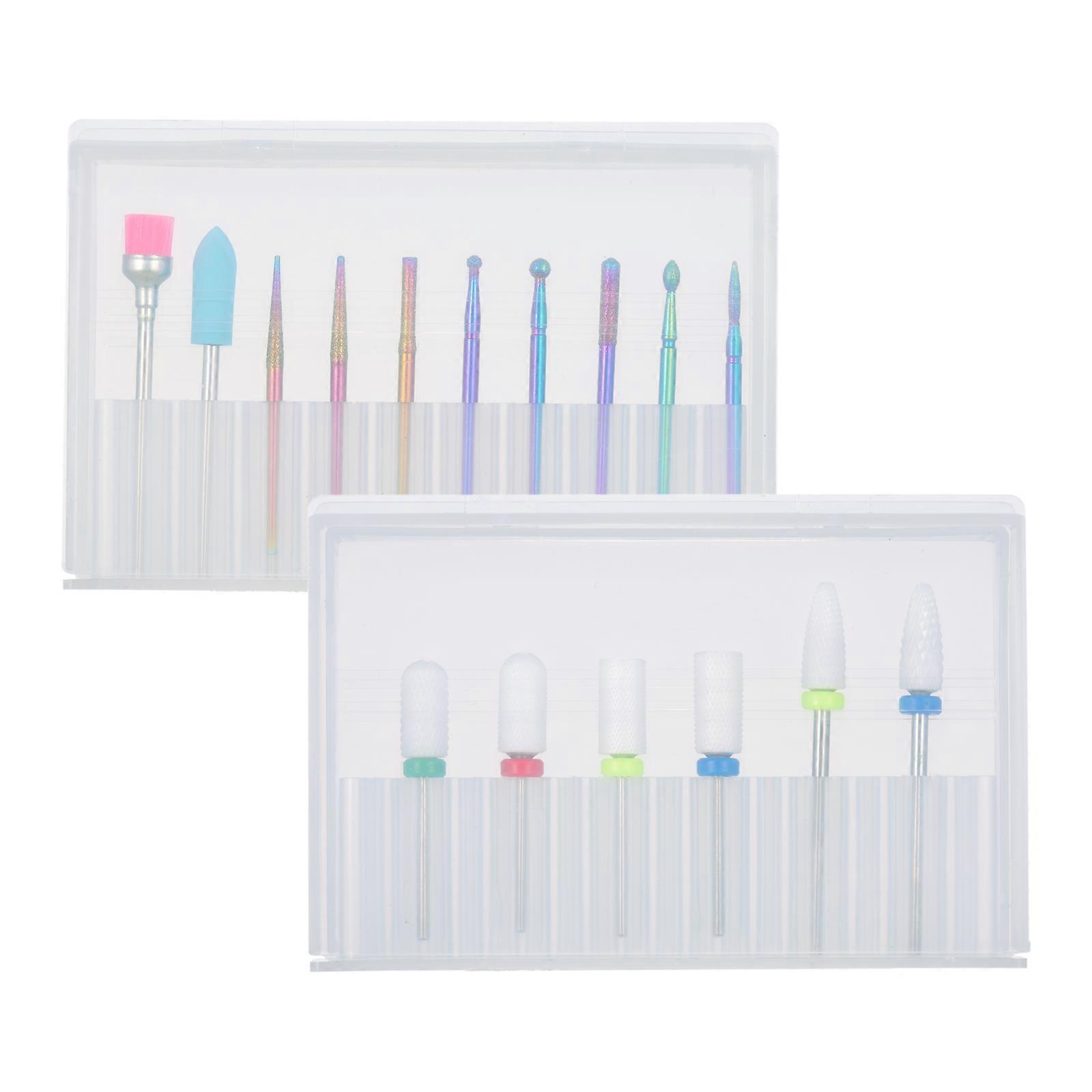 16pcs Nail Drill Bits Set 3/32'' Ceramic Tungsten Steel Nail Drill Bits for Acrylic Gel Nails Electric Nail File Bit Cuticle Remover Manicure Pedicure