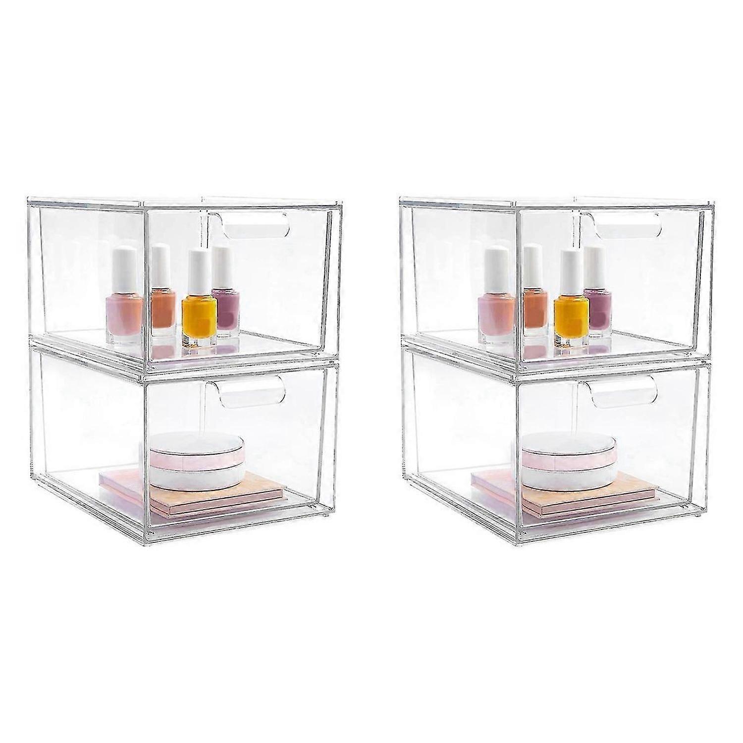 2 Pack Stackable Makeup Storage Drawers, Acrylic Bathroom Organizer