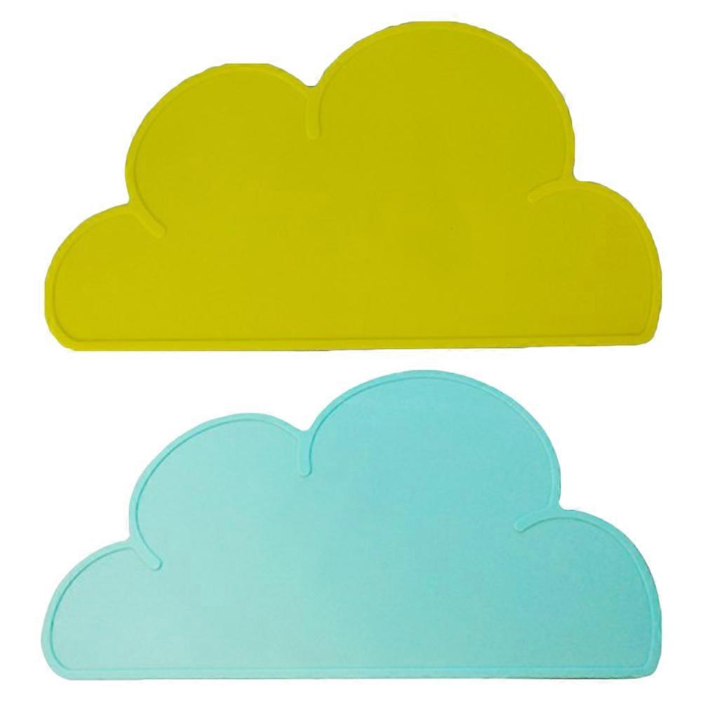 2 Pcs Children Cloud Shaped Coasters Heat-insulation Silicone Pot Mat Bowl Mat Plate Pad Placemats Pet Dining Mat (Light Green + Yellow)