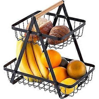 2 Tier Fruit Basket Rack with Wooden Handle, Vegetable and Fruit Storage, Save Counter Space, Removable Fruit Rack for Fruits, Vegetables, Snacks at H