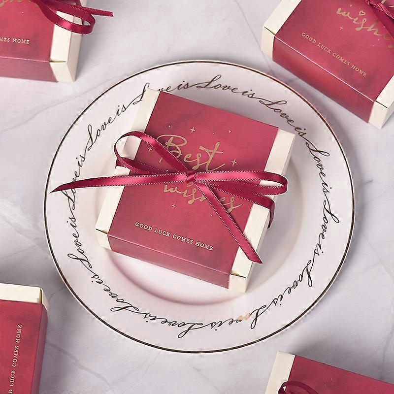 20 Pcs/Lot Creative Bronzing Letter Square Wedding Candy Box Holiday Supplies Small Gift Wrapping Carton + Ribbon