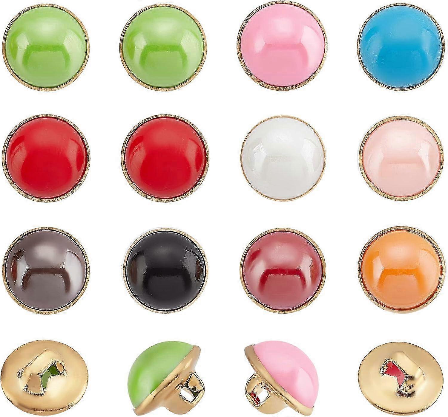 2025 100 Pcs 10mm Pearl Resin Buttons Half Resin Dome Cap Gold Brass Base Buttons Crafting Sewing Shank Buttons for Clothes DIY Project 10 Colors