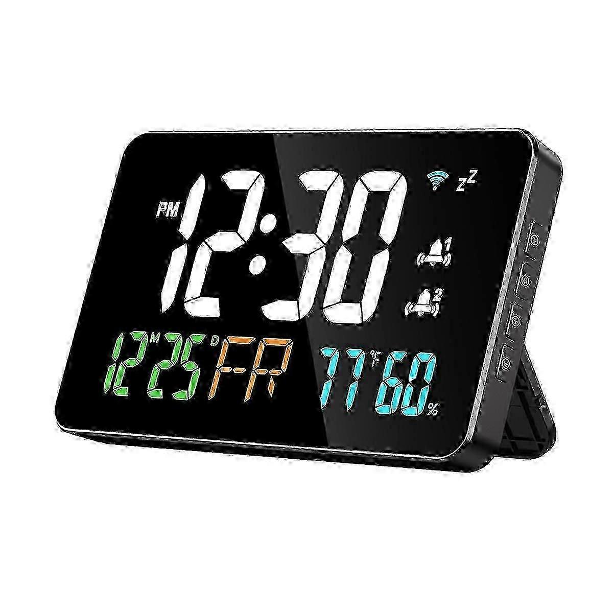 2025 Digital Alarm Clock with WiFi, Extra Large Display for Time, Temperature, Humidity, Calendar, and Week, Handy for UK Bedrooms