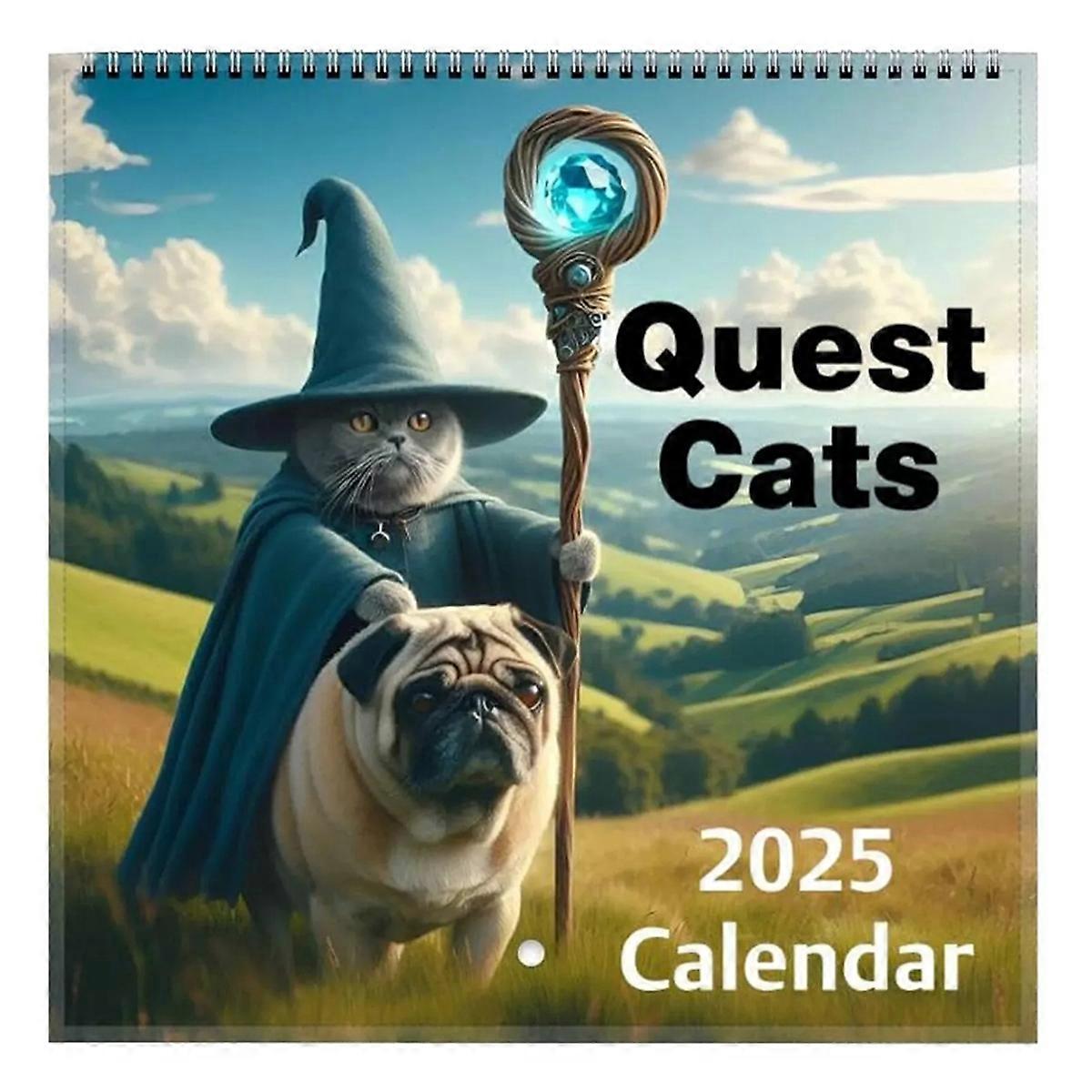 2025 Weird Medieval Quests Cats Calendar,Cat Wall Monthly Calendar