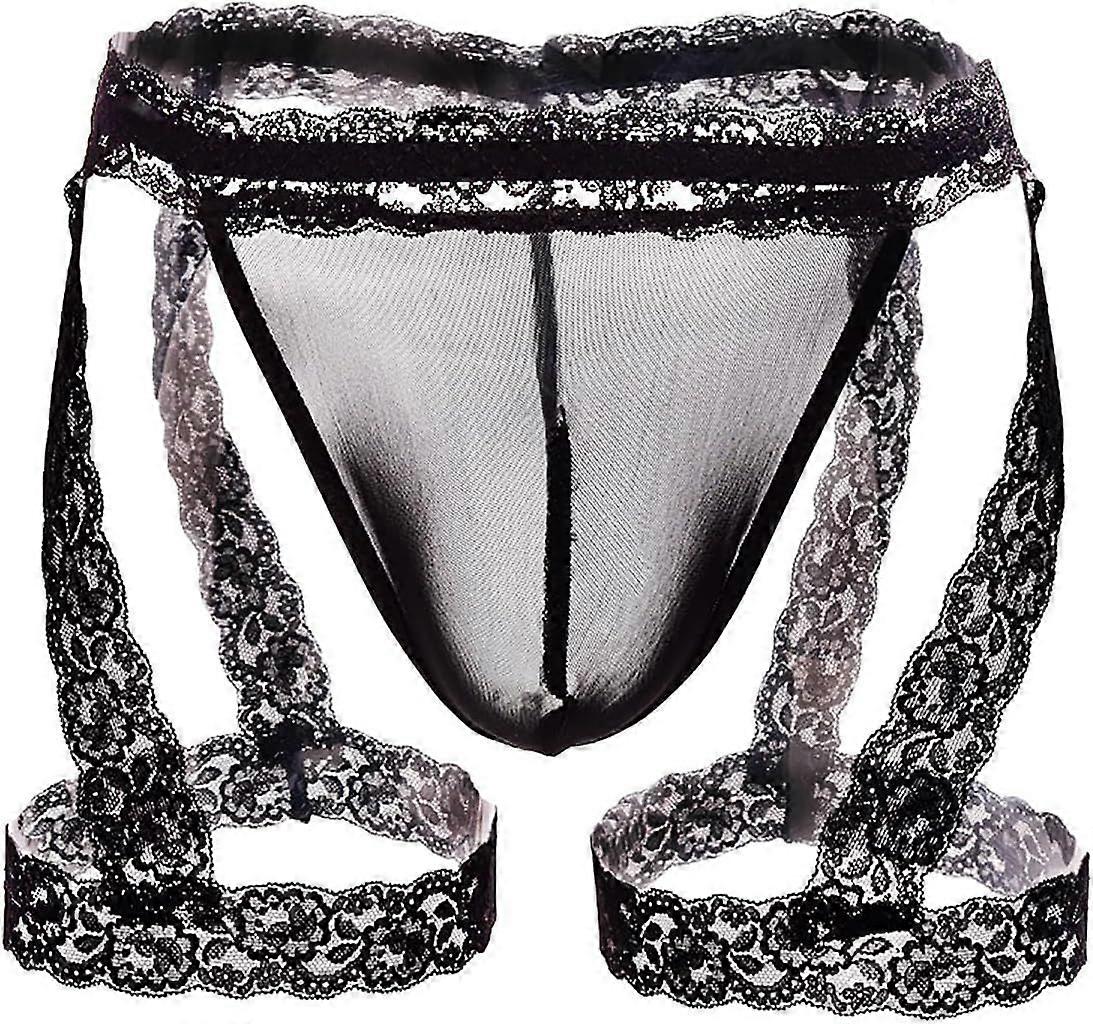 2025 Latest Model Men's Panties Lace Underwear Sheer Pouch Thongs with Garters