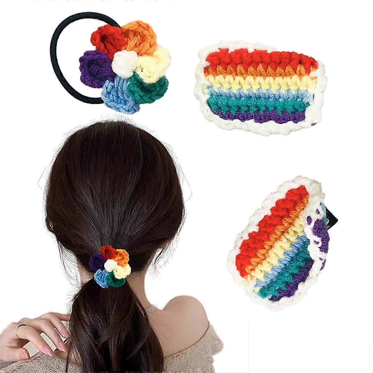 2025 Latest Model Rainbow Flower Hair Clips for Women's, Colorful Knit Hair Clips Hair Tie