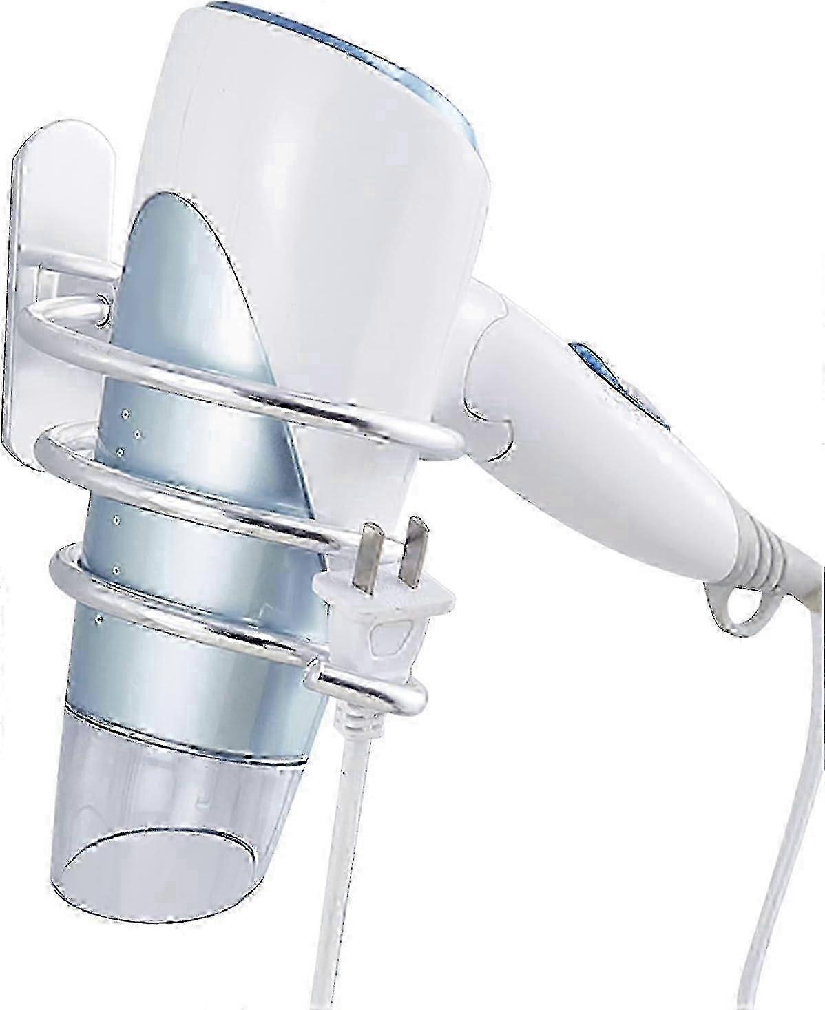 2025 Aluminum Alloy Wall-Mounted Hair Dryer Holder with Cable Hook and Adhesive