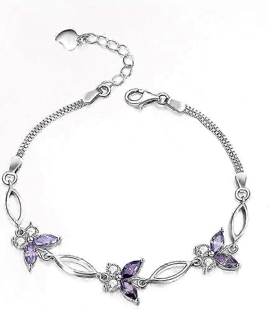 2025 Stylish S925 Silver Purple Butterfly Fashion Bracelets Ideal Wrist Accessories for Women and Teen Girls Perfect Jewelry Gift with Charm