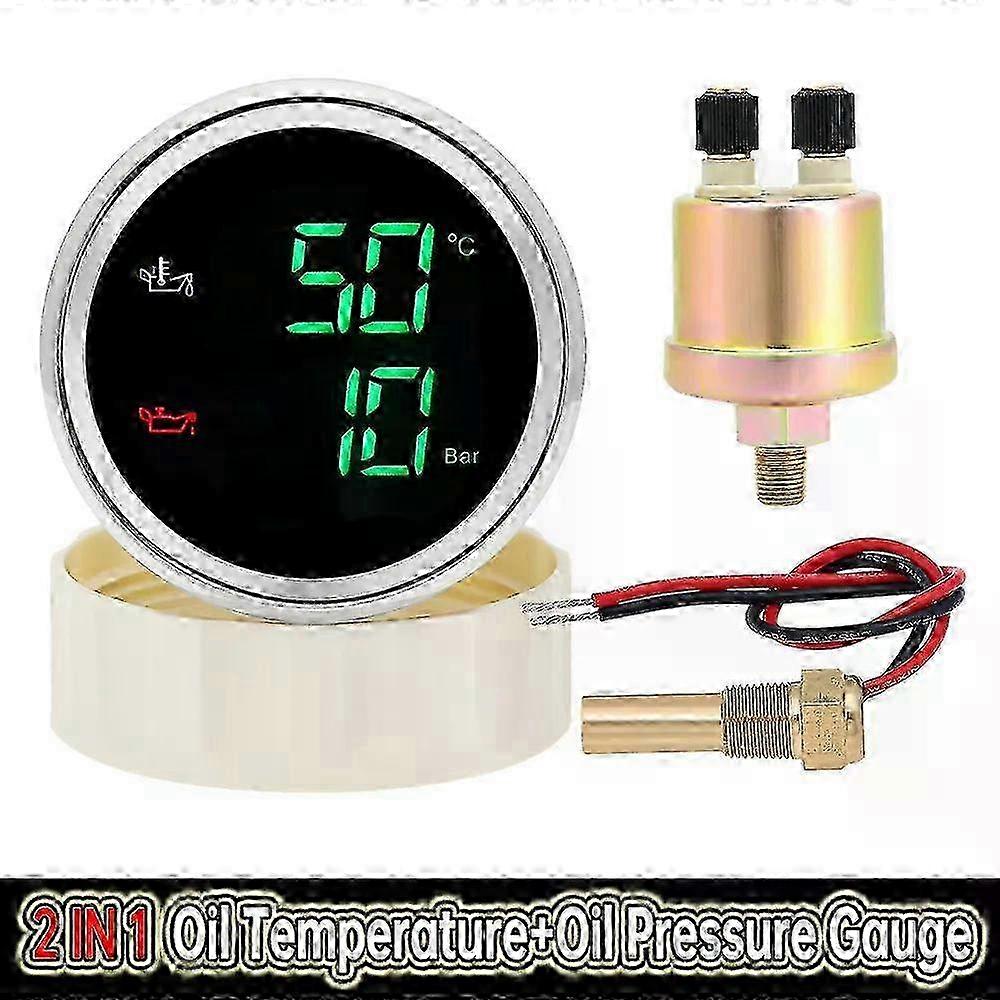 2025 Oil Temp & Pressure Gauge with Digital Display, Red & Pressure Gauge with Digital Display Red/Green Backlight & Sensor – For Marine Boat Car (9-3