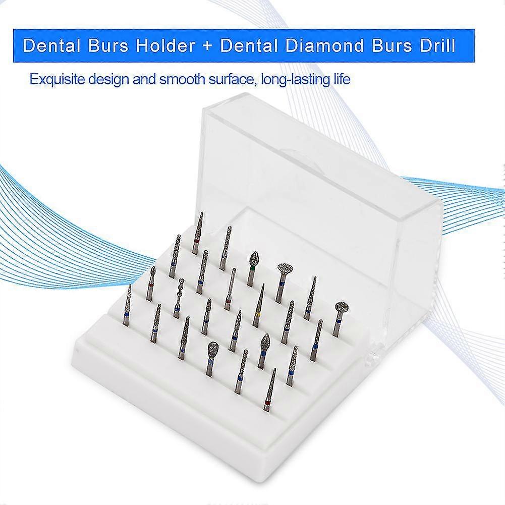 24 Holes Dental Burs Holder + Dental Diamond Burs Drill High Speed Block Alloy Autoclavable Box