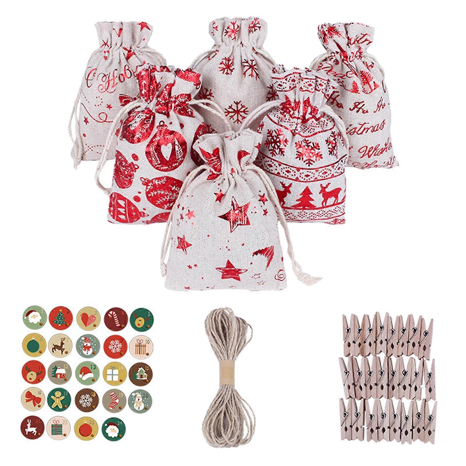24Pcs Christmas Linen Burlap Gift Bags with Drawstring, Small Christmas Jute