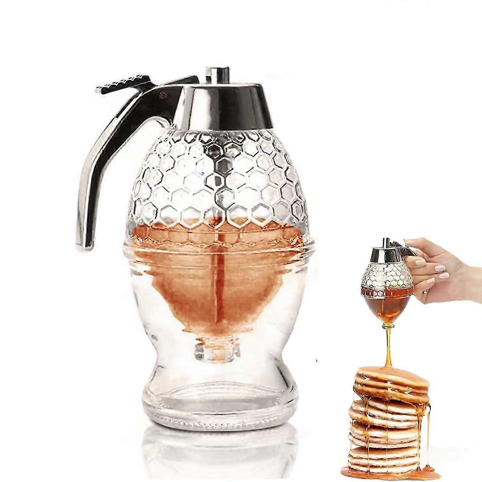 25-26 Honey Dispenser No Drip with Stand & Honeycomb Design for Kitchen Bee-Themed Decorative Container