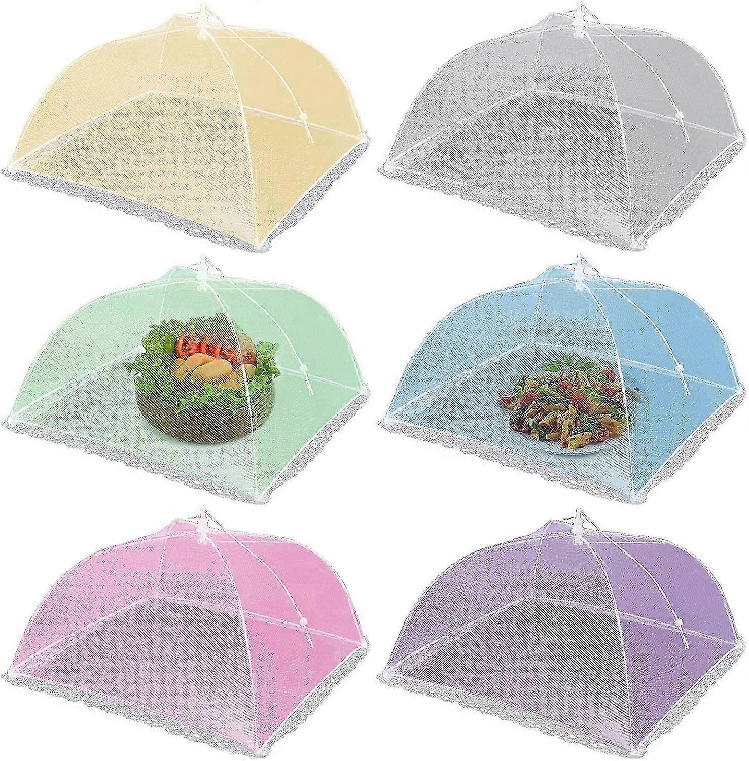 25-26 Umbrella Food Cloche, 6 Pcs Fruit Cloche, Pop-up Anti-Insect Cloche, Mesh Food Cloche, for Barbecue Picnic Food and More (Multiple Color)