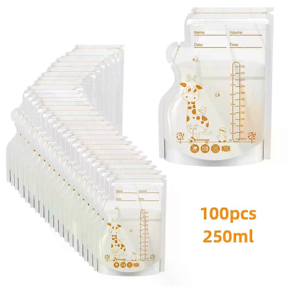 250ml 30/100pcs Breastmilk Storage Bag Self Standing Baby Food Storage Containers No Leak Milk Freezer Bags Safe Feed BPA Free