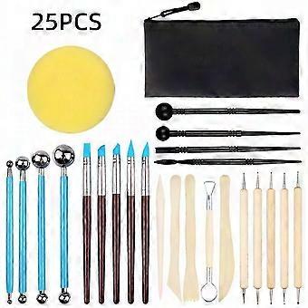 25pcs Polymer Clay Tools Kit - Wooden & Rubber Sculpting Tools for Modeling & Pottery