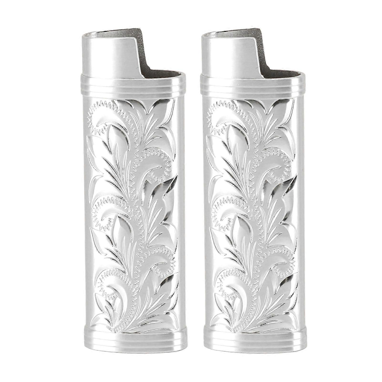 2Pcs Lighter Case Zinc Alloy Lighter Storage Container Floral Pattern for Outdoor Camping Hiking