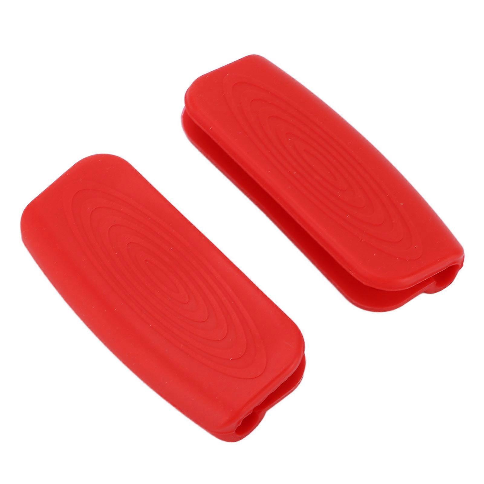 2PCS Red Silicone Pot Handle Holder Sleeve Heat Insulated 3.5x8cm