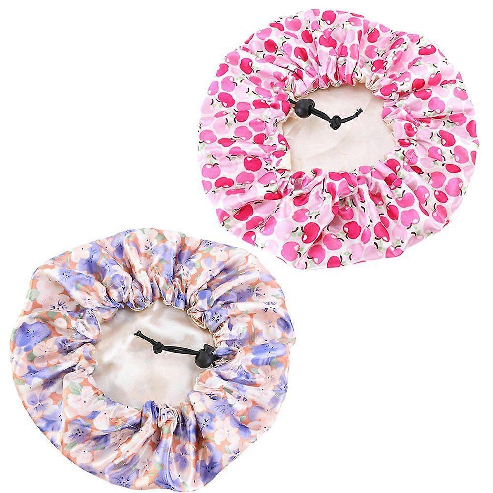 2pcs Kids Adjustable Sleeping Creative Sleeping Hat Double Layer Bath Hat Satin Night Hat (Apple Pink, Flower Royalblue)