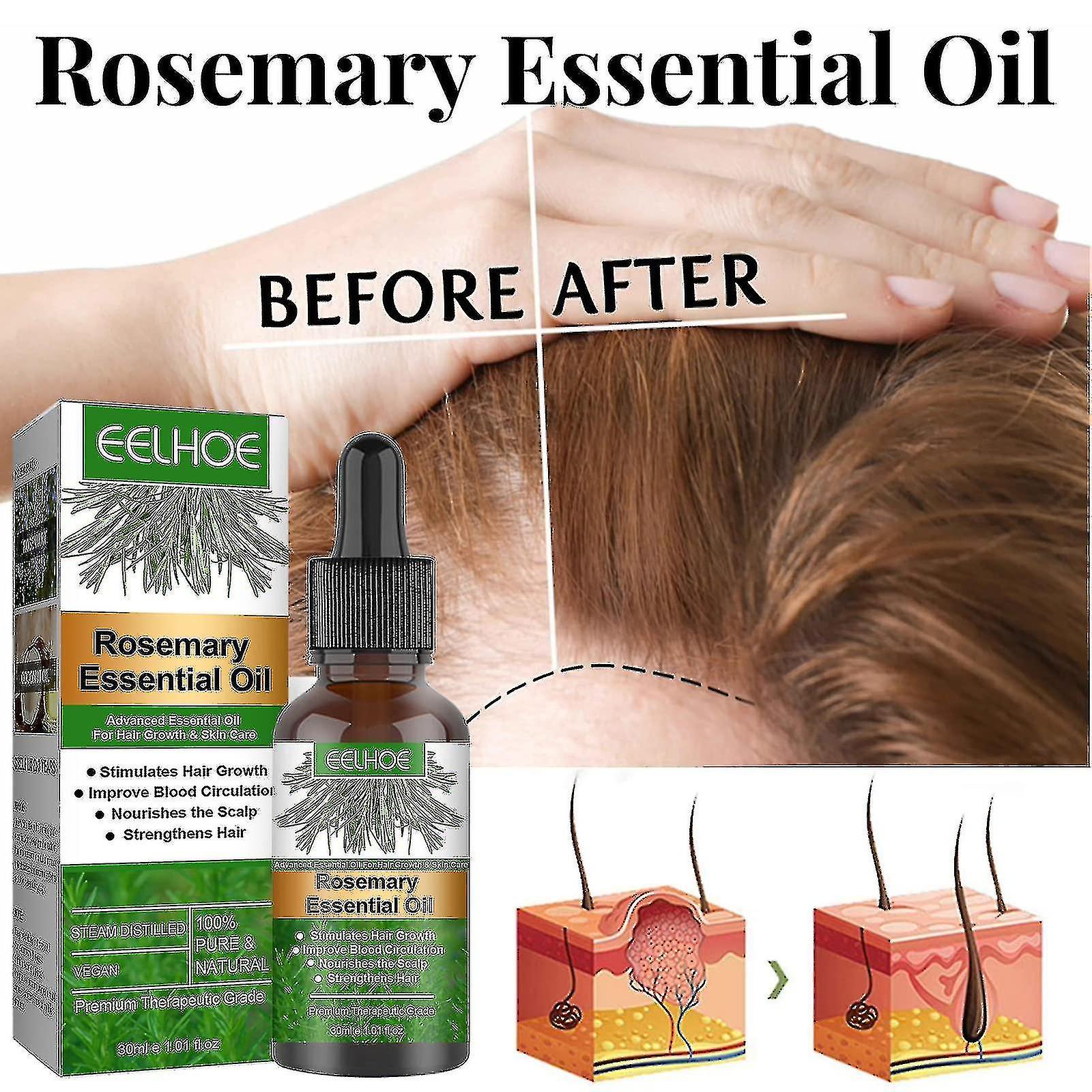 Description Promoting Hair GrowthHair growth oil works effectively by naturally activating dormant hair follicle germ tissue on the scalp,It provides deep nourishment to hair,control sebum,promoting rapid growth and nourishment of them due to its unique organic ingredients.Rosemary oil also can used as eyebrows and eyelash growth. Natural GentleMade of pure rosemary,this rosemary oil for hair growth is free of any additives,other chemicals and fillers,refreshing and relaxing,safe to use,giving you amazing results in the shortest amount of time. Nourishes Fuller HairRosemary Oils is high in nutrients,treat your hair with active nutrients that keep them looking healthy without looking greasy,balance the oily scalp,give deep nourishment to hair,control sebum,maintain healthy scalp,strengthen hair shine and moisturize dry hair with less frizz,hair loss and breakage. Easy to UseTake a small amount of rosemary nourishment oil to the scalp and hair,massage with fingers for 2-3 minutes until absorbed.Use 1 or 2 times a day,make your hair look flawless everyday. Suitable for All Hair Hair growth oil is designed for all hair types. If you have curly,straight,light,dark,long,or short hair,breakage and thinning hair,this advanced essential oil is made for you Rosemary oil bringing a whole new feel to yourself.
