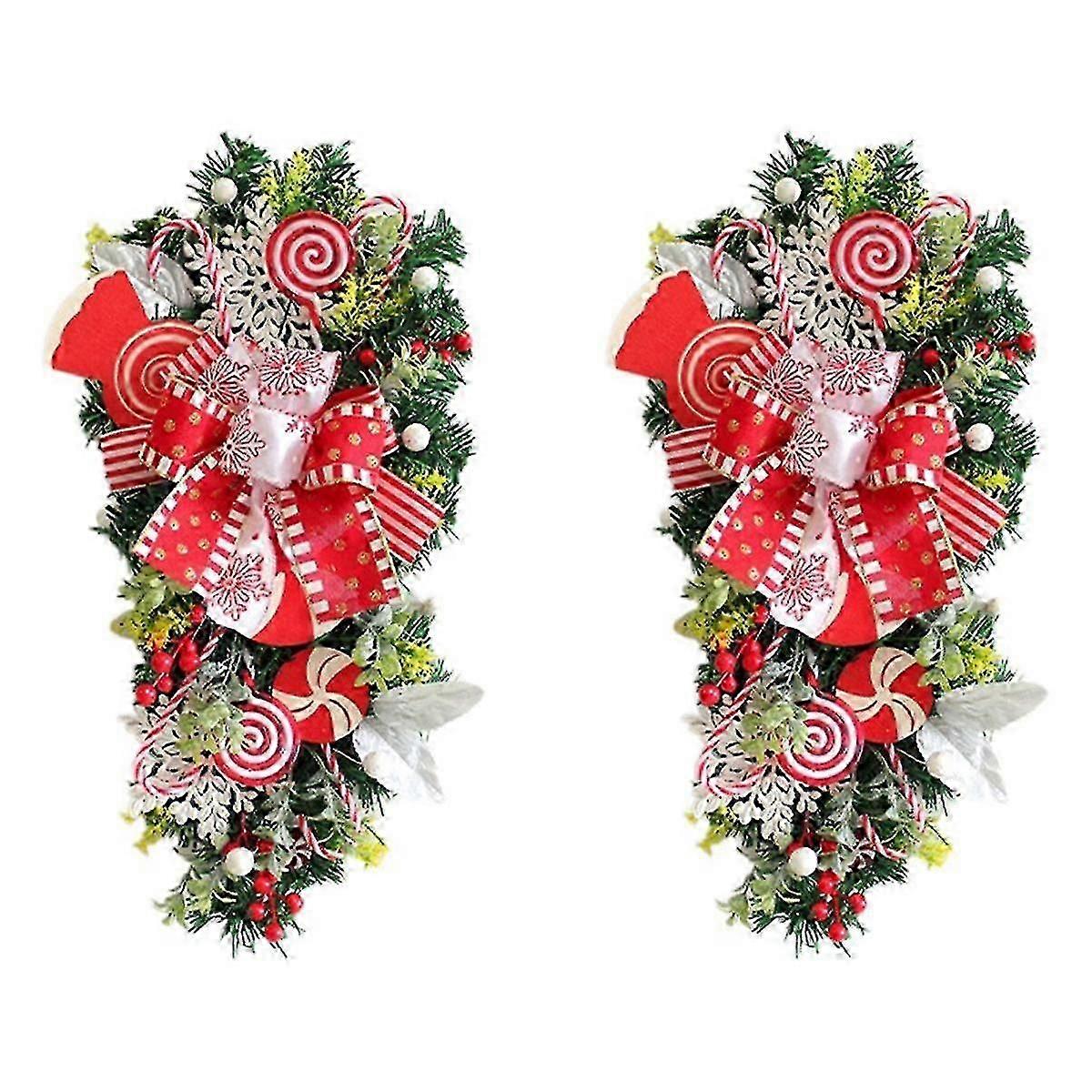 2pcs Christmas Candy Cane Wreath For Front Door Christmas Stairway Decorations Christmas Wreath For