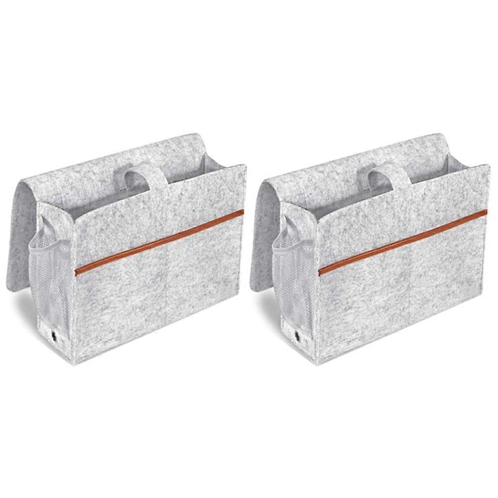 2X Bedside Organizer, Felt Bed Storage Caddy with Tissue Box and Water Bottle Holder, Magazine Phone Tablet - Light Gray