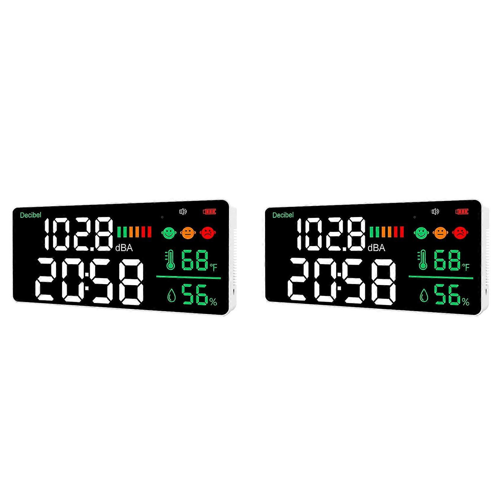 2X Decibel Meter Wall Hanging Sound Level Meter 30-130DB Range 8.6 Inch Large LED Display Noise Time Temperature