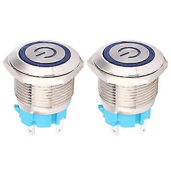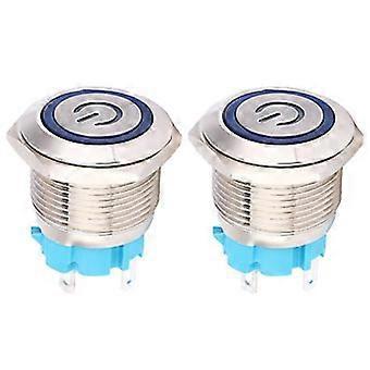 2x 12-24VDC push button, 19mm round 4-pin self-resetting with light, blue
