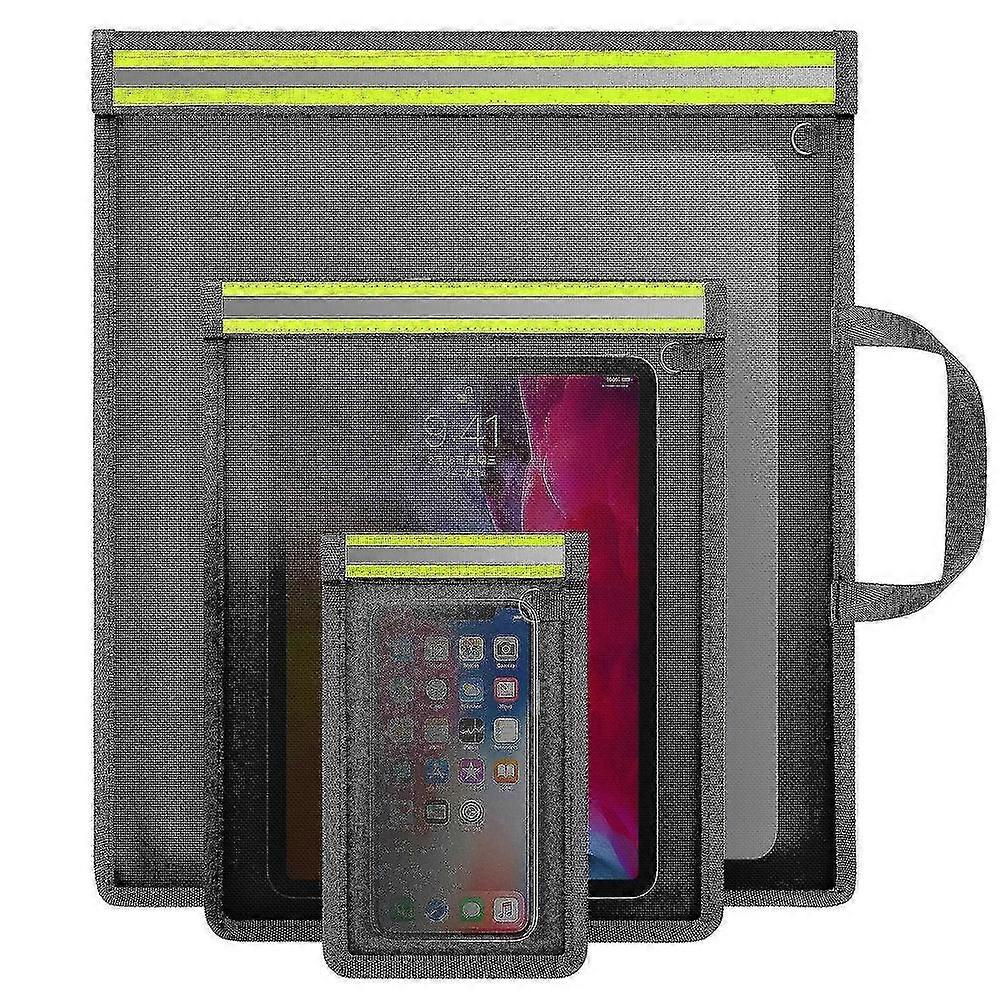 Features Our Faraday bags come in three different sizes to meet various storage needs. The largest size is 17 x 15 inches, suitable for laptops, tablets and documents. The medium size is 12.5 x 10 inches, ideal for tablets and phones. The smallest size is 7.9 x 4.7 inches, perfect for mobile phones, cards and cash. This Faraday bag is made of shielding fabric with excellent signal blocking ability. It effectively blocks WiFi, Bluetooth, mobile phone signals, GPS and RF signals to prevent your electronic devices from being tracked and ensure the security of your personal information. A reflective strip is added to the bag to make it easier to find and retrieve items at night or in low light conditions, improving visibility and ensuring the safety of your items. Each Faraday bag comes with a small metal ring, allowing you to hang it on a backpack, wall or hook. The largest Faraday bag also features a handbag design for easier carrying during travel or daily commuting. Condition: New. The Faraday bag is made of Oxford cloth and PU leather as surface materials. The external material of large and medium bags is made of Oxford cloth, while small bags are made of PU material. This design ensures a long service life and excellent load-bearing capacity. Specification Material: Fireproof Cloth Color: Black Size: 43 x 38 x 1 cm Weight: 285 g Package Includes: 3x Faraday Bags