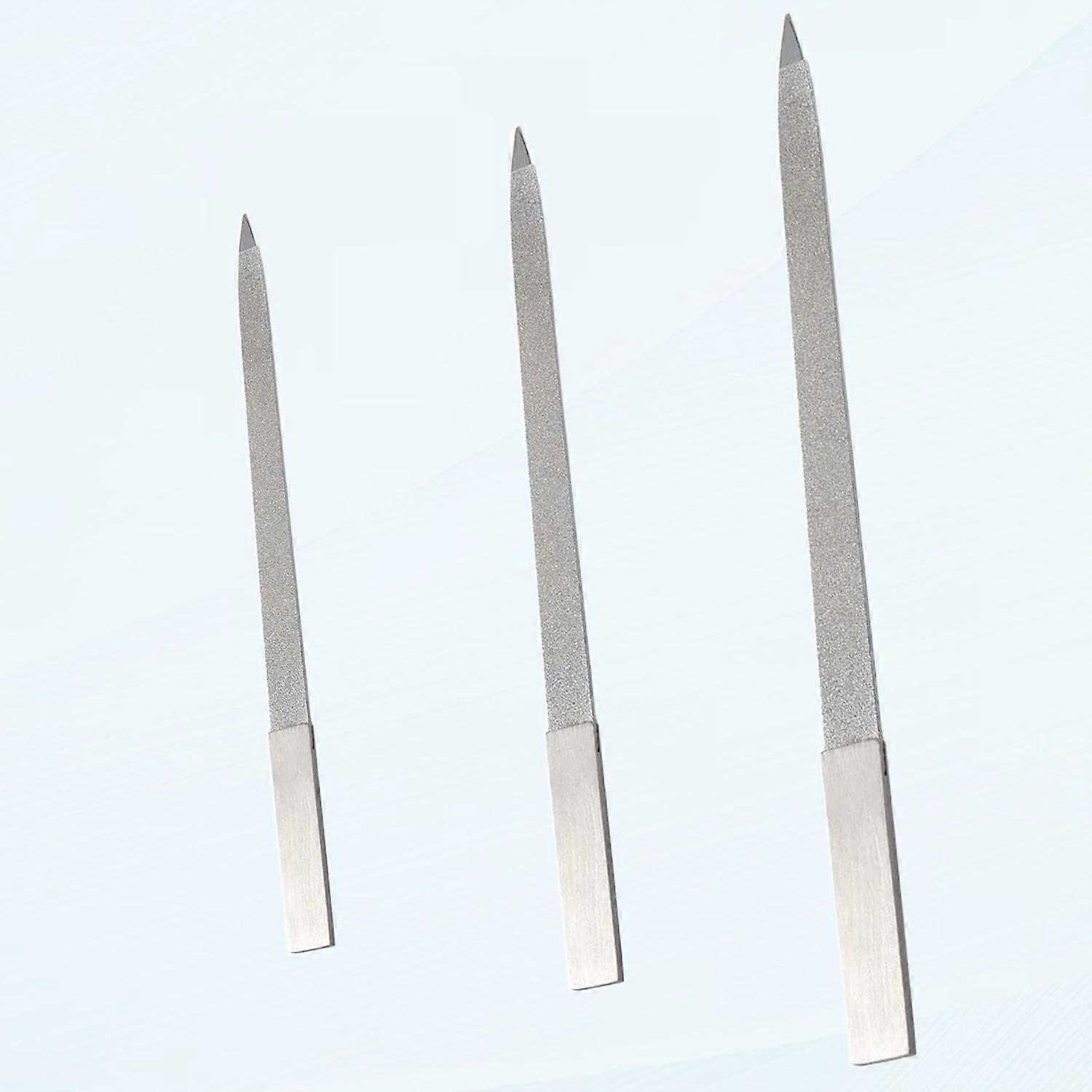 3 Piece Diamond Nail File Stainless Steel Buffer Finger Nail Toenails Manicure Files Double Sided Long Handle Nail File, 3 Sizes